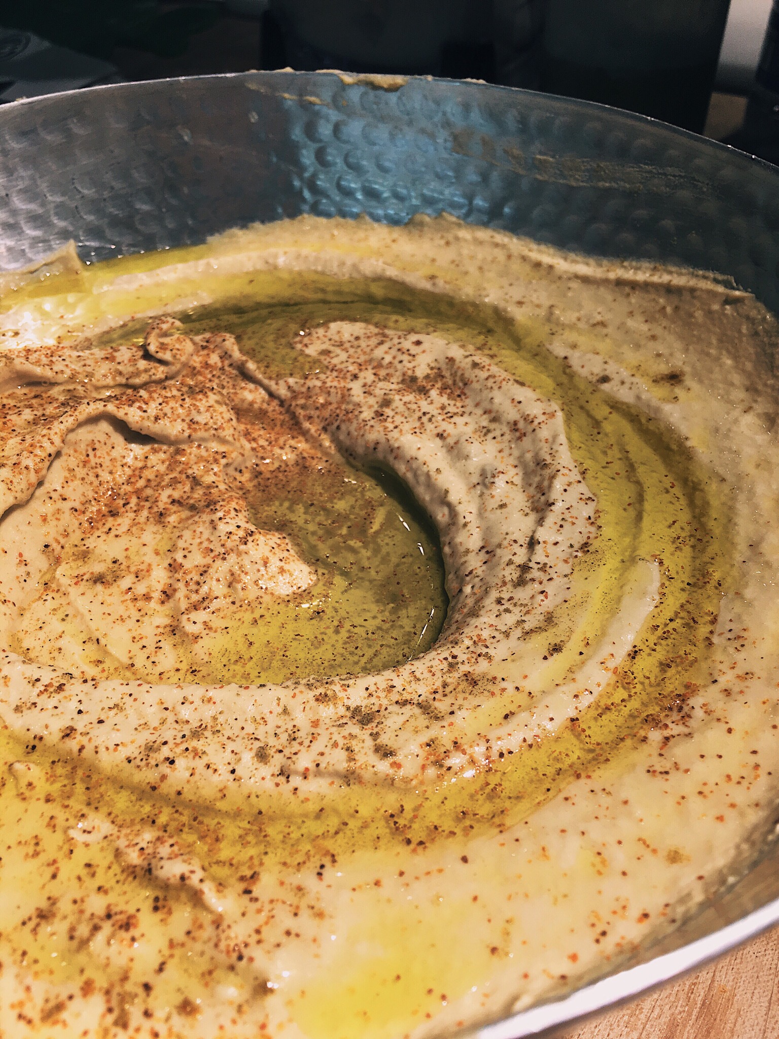 circumference of the dip, about ½ inch from the edge. Drizzle oil for garnish.
