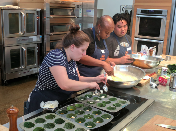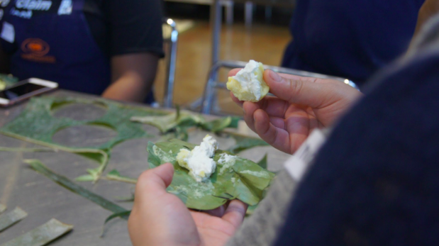 Ervin Lopez a freelance cook, professional eater, and culinary student at Laney College taught our students how to make a Filipino street food snack – Bibingka. Bibingka is a traditional Filipino dessert and street food usually made for the Christmas season. Bibingka has a mysterious origin that, to this day seems to still be unsolved. Some say it was the fusion between Portuguese explorers such as Ferdinand Magellan and native Filipino ingredients and food that led to the present day Bibingka. The flame for Ervin’s passion to make Filipino dishes grew when he visited his hometown of San Quintin, Pangasinan in Northern Luzon, Philippines. He fell in love with the landscape and the strong relationship food has with family in the Philippines. Back to the Bibingka. These aren’t your everyday spongey coconut cakes, Ervin makes a Bibingka cupcake filled with cream cheese and salted duck eggs! In his class with the Guardian Scholars of San Francisco State University and Skyline College last March, he showed our students how to make this treat to tie in perfectly with our class theme of Food, Family, and Ethnicity.